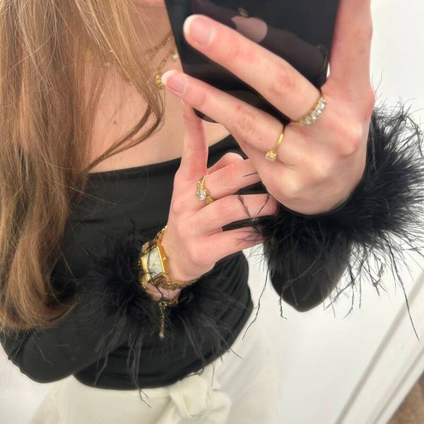 Deze top heeft een mooie hals met feestelijke mouwen, ook leuk te dragen onder een blazer
